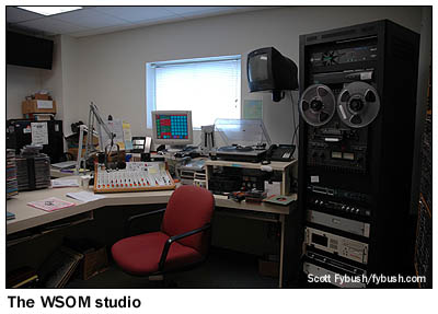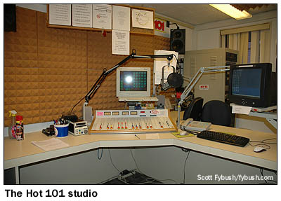 Across the hall, facing out to the back parking lot, is the WHOT-FM studio, a cleverly-designed space with lots of room for the jock, soundproofing foam not only on the walls but also on the ceiling, and a nifty black curtain concealing the equipment racks behind the DJ. It may not be the slickest, most modern studio around - but it sure gets the job done. K105 and Y103 are consistently the top two FMs in town, and WHOT's not far behind. Next week, we'll close out 2006 with a studio that looks more like 1936 - don't miss it!