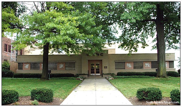 ![]() December 29, 2006 WHBC, Canton, OH![]() Regular readers of Tower Site of the Week know that I have a thing for Art Deco radio buildings. Call it nostalgia for a Golden Age of radio that was gone before I ever came on the scene, or just simply a soft spot for studio doors with round windows in them, but there's something about classic radio and Art Deco architecture that just seems to go right together. So why did it take me so long to get inside the studio building of WHBC (1480) and WHBC-FM (94.1) in Canton, Ohio? I first saw the outside of the building a decade or so ago, and it was obvious even then that this was as classic as a radio station building gets, from the illuminated calls over the doors to the relief sculptures (each portraying a different attribute of broadcasting - "learning," "swift communication," "dissemination of news and information," "truth," "comedy and drama," and "music") between the glass-block windows to the - can it be? - big main studio visible right through the plate glass windows from the main entrance.