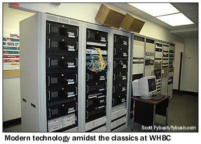 Amidst all the Deco detail, there's plenty of modern technology, too. Where the old master control used to sit, and later the FM automation, there's now a rack full of ENCO automation and other contemporary equipment, the handiwork of chief engineer Bill Glasser. He came to WHBC in 1966, so he was actually the guy who installed a lot of the gear that came out when the ENCO went in. And before he takes a well-deserved retirement in February, he gave us a tour of the WHBC transmitter site (well, one of them, anyway) - which is where we'll head in next week's installment.