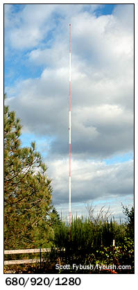 And then, a few months later, once we've caught our breath (and some much-needed sleep), we share it all with you here on Tower Site of the Week (and in audio form over on Tophour.com) in a feature we call "The Big Trip." The 2006 version of the Big Trip began and ended in Seattle, and along the way took us as far south as Eugene, Oregon and as far east as Coeur d'Alene, Idaho. Day One - Thursday, September 21 Our little group met up near the baggage-claim area at the Seattle-Tacoma airport...and that's where we stayed for an hour or so, waiting and waiting and waiting for the last of the bags (mine) to come off the conveyor (complete, it would turn out, with one broken VCR, which would become problematic later that night in Eugene, but we're getting ahead of ourselves here.) Once the bags were in and the rental car was procured, we wasted no time heading south to our first destination: the six-tower array on the east side of Tacoma, near the spot where I-5 crosses the Puyallup River, right behind the "SHEEP" sign, that's home to Clear Channel sports station KHHO (850).