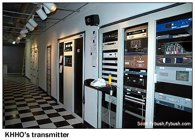 The room includes a little desk for KGY's talk programming, and the transmitters are right there, too - a Harris MW1 for primary use and a nice clean RCA BTA-1R as a backup.