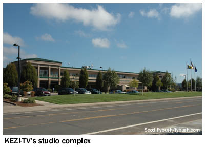 With the fog mostly lifted, we head north again, into Eugene's sister city to the east, Springfield. That's where we find the pretty little studio/transmitter site of religious KORE (1050), complete with the vintage Chevy out front and a very curious employee wondering why all those guys are standing at the end of the driveway taking pictures of his building. In addition to KORE, this tower is also the construction permit site for KKNX (840), which now uses a short tower on the west side of Eugene. From here, we begin working our way north and west, stopping at the Gateway Mall near the I-5/I-105 interchange for the aforementioned VCR, then moving north to the interchange of I-5 and the Beltline Road, where we find the office park that's home to KMTR-TV (Channel 16), the city's NBC affiliate and one of the last new "big three" affiliates anywhere, having signed on only in 1982.