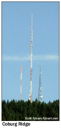 And then, a few months later, once we've caught our breath (and some much-needed sleep), we share it all with you here on Tower Site of the Week (and in audio form over on Tophour.com) in a feature we call "The Big Trip." The 2006 version of the Big Trip began and ended in Seattle, and along the way took us as far south as Eugene, Oregon and as far east as Coeur d'Alene, Idaho. Day Two - Friday, September 22 One of the challenges in planning a Big Trip is figuring out just how far afield to roam. We don't like to drive more than a few hours on any given day. We like to be sure we're spending at least one weeknight and one weekday morning in each TV and radio market where we want to aircheck. We try to allow enough time in each larger market for plenty of tower and studio visits, and maybe even some non-radio tourism along the way. But at the same time, we don't like the idea of knowing there's another interesting market just an hour or two down the highway that we're missing. So as the Oregon plans for Big Trip 2006 began to come together in the spring (yes, we plan ahead, and then some), the calculus eventually produced the result that Eugene was in, but Bend and Medford were a little too far out of the way. And thus it was that we sped through Portland, Salem and Corvallis on the first night of our trip, making the long drive that landed us at a motel in Eugene just after 10 PM. (Not only was that a little too late to tape the news on Fox affiliate KLSR-TV 34, but we'd soon discover that one of our VCRs was busted, thus costing us a shot at one of the city's 11 PM newscasts, too, and sending us on a detour the next day to buy another cheap VCR. But we digress.) Friday morning dawned foggy, but the forecast called for sun later on, so we decided to get some driving out of the way early, heading about 10 miles south of Eugene to our first Oregon tower stop, at 50,000-watt KPNW (1120). By the time we turned off I-5 near Creswell, the fog was burning off, and after we'd driven through the farmland around the closely-spaced four-tower array looking for the gate (which was locked), the sun was out and we were locked in to some very nice weather for most of the rest of the trip. KPNW, now owned by Clear Channel, was a distinct latecomer to the dial, signing on only in 1962 as 10 kW daytimer KPIR on 1500. It moved down the dial to 1120 in 1967, as one of the first Class II-A stations to break down the eastern clear channels, and remains widely heard at night up and down the West Coast.
