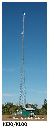 And then, a few months later, once we've caught our breath (and some much-needed sleep), we share it all with you here on Tower Site of the Week (and in audio form over on Tophour.com) in a feature we call "The Big Trip." The 2006 version of the Big Trip began and ended in Seattle, and along the way took us as far south as Eugene, Oregon and as far east as Coeur d'Alene, Idaho. Day Two - Friday, September 22 With our whirlwind survey of the sites of Eugene wrapped up, there's still a lot of ground we want to cover before the first full day of the Big Trip draws to a close - 150 miles or so of driving that will take us north to Portland and then west to the coast and our weekend stop in Seaside. Heading north out of Eugene, it's about 35 miles to another big college town, Oregon State University's home base in Corvallis. With an appointment to keep, we don't spend long in downtown Corvallis, instead making our way north along US 20 as it follows the bends in the Willamette River to our first stop, the diplexed tower that holds two of Clear Channel's AMs in town. KEJO (1240 Corvallis) does sports as "1240 Joe," while KLOO (1340 Corvallis) is the news-talker, "NewsRadio 1340 KLOO-AM" (and yes, they do say it like "Clue"!)
