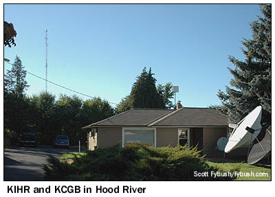 It's here that we say goodbye to Kent, and to Portland. There's much left unseen, including a whole cluster of AM sites on the Washington State side of the market, and we will surely be back at some point to see more of the sites in this wonderful market. Now, though, we're taking advantage of a few remaining hours of daylight to make the scenic drive east on I-84 through the Columbia River Gorge, stopping first at the Bonneville Dam hydroelectric plant (where you can watch the salmon swim through the fish ladder down below water level), then in the small town of Hood River, 65 miles east of Portland. KIHR (1340) and KCGB (105.5) are the local commercial stations, and they're in a little house on a hill just southwest of downtown.
