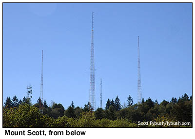 In time, more towers sprouted up here on Mount Scott. KMJK (106.7 Lake Oswego) went on the air from a separate Mount Scott site in 1977, after the sad demise of the original 106.7, KQIV, which used a different site. (You can read all about KQIV's fascinating history at the fantastic rockininquad.com website.) It remained on Mount Scott until 1997, when (as KKJZ) it relocated to Sylvan.