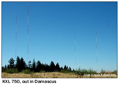 ![]() March 23, 2007 The Big Trip 2006, Part VII: East From PortlandOnce every year or so, when finances and schedules permit, your editor and a couple of his similarly-obsessed radio pals get together to spend a week or so exploring a corner of our great nation, packing our schedules as full as possible to visit as many interesting broadcast facilities as we can. And then, a few months later, once we've caught our breath (and some much-needed sleep), we share it all with you here on Tower Site of the Week (and in audio form over on Tophour.com) in a feature we call "The Big Trip." The 2006 version of the Big Trip began and ended in Seattle, and along the way took us as far south as Eugene, Oregon and as far east as Coeur d'Alene, Idaho. Day Five - Monday, September 25 When we left off in the second part of our Portland visit last week, we were way out in Portland's eastern suburbs, touring the historic transmitter site of KEX (1190), which has more recently become home to sister station KPOJ (620) as well. Those are two of Portland's biggest AM signals, and our next stop after we leave that site is to do a drive-by visit of another big Portland AM site. KXL (750) is a venerable Portland AM, having signed on way back in 1926 as a 50-watter, with a long, colorful road to today's 50 kW day/20 kW night operation. Before the 1941 NARBA shuffles, KXL spent more than a decade on what was then the graveyard frequency of 1420, sharing time with high school station KBPS, which we saw last week. In October 1941, KXL moved down the dial to 750, becoming a 10 kW daytimer, with some additional night operation after Atlanta's WSB had signed off for the night. (Such limited west coast night licenses were not uncommon; 1020 in Los Angeles and 1100 in San Francisco were among the stations with similar authorizations.) KXL went to 50 kW daytime operation in 1960, and in 1977 it lost its longtime transmitter site (just north of the KEX site, on the other side of I-205) to the development that would become the Clackamas Town Center mall. KXL relocated to Damascus, Oregon, about 6 miles east of its old site, and built the site it uses today, with two 337-foot towers and two 289-foot towers. In 1984, KXL finally went fulltime, initially with 1 kW at night, and later with 10 and then 20 kW. Since 1998, KXL has been the flagship property of Rose City Radio, owned by Paul Allen, the Microsoft co-founder who now owns the Portland Trail Blazers, among other things.
