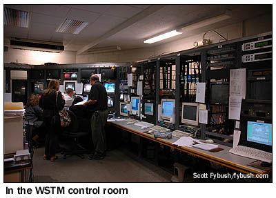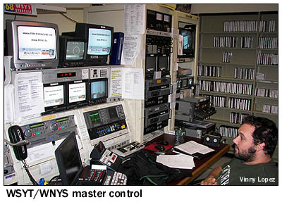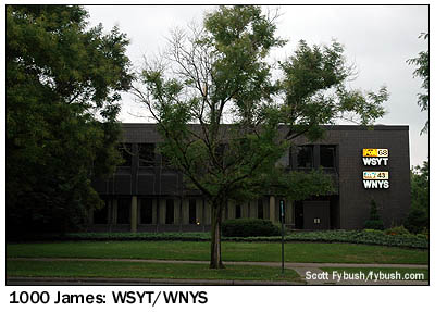 We didn't actually go inside 1000 James Street on this trip, but our good friend Vinny Lopez, who's both an engineer there and one of the masterminds behind the big SBE 22 Expo every fall, wouldn't let us finish up a Syracuse Site of the Week without showing off his digs. That's master control, above right, for both Fox affiliate WSYT and its LMA partner, WNYS (Channel 43), which had just moved from The WB to My Network TV.