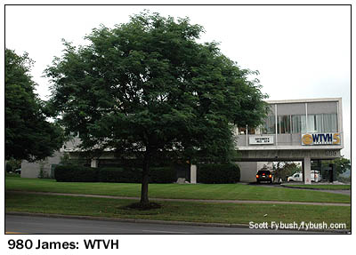From WSTM, it's just a very short stroll over to most of the city's other TV stations. A few years after WSYR built its big studio facility at 1030 James Street, WHEN-TV (Channel 5) and WHEN (620) inaugurated their new digs at 980 James Street in the early sixties. When radio and TV split up in 1976, the TV station stayed here under its new calls of WTVH - and never having been inside, I don't know what's become of the old second-floor radio studios. (I do know that the logo on the front of the building always seems to be a logo change or two behind the current version.