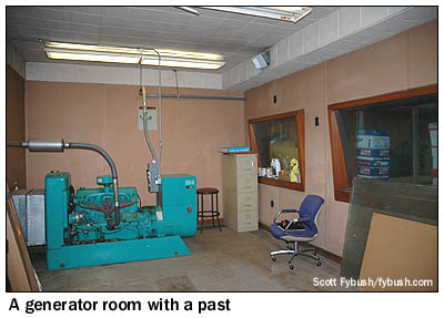A raised area adjacent to the transmitters, behind the phasor, was clearly once the control room when 950 operated its studios here. There's still a "WBBF 950 KC" sign hanging above one window, and an old rack that once held LPs abover another. That studio looked into two other studios, a small one that's now used for storage and a larger one that houses the station's generator. The only sign of the WARC era still remaining is an old equipment case (a remote amplifier, possibly) that sits on one of the storage shelves in the transmitter room, probably untouched for decades. And there's one more chapter to the story of this site, to be seen (for now) in one of the garage bays at the north end of the building, off the old main entrance. When another of 950's neighboring stations, WHIC (ex-WHEC/WAXC/WWWG) 1460, lost its transmitter site in 2006, its initial plan was to diplex on the 950 site. Shortly before the old 1460 site on Winton Road was demolished, WHIC moved its transmitters into the 950 garage, diplexing into one tower of the array with (if memory serves) 4500 watts day, 750 watts at night, non-directional under Special Temporary Authority. A CP was issued to upgrade the night signal to 3000 watts, using the three 950 night towers, but for various reasons WHIC ended up looking elsewhere instead. It's completing construction on a new three-tower array in Henrietta, a few miles to the south, and before long the equipment now in the garage will be gone. (Only the Gates Five shown at right was ever in use from the 950 site; the old E.F. Johnson phasor and MW-5 that came over from the old site were simply in storage here.) Tower Site Calendar 2008 is here! Visit the Fybush.com Store now and get your calendar before the price goes up next month!