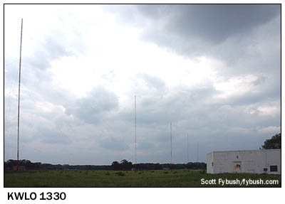 If this building looks like it might have once been a TV studio, that's almost right - KXEL applied for the channel 7 allocation in the early fifties, apparently with so much confidence that it would win the license that it went right ahead and built a TV studio space. As it turned out, that space would never be used for TV, as the license went to crosstown KWWL instead. The former KWWL(AM), now KWLO (1330), sits just a mile or so south of the old KXEL studios, with a five-tower in-line array aiming west into town, using two towers by day, five towers at night, and 5000 watts all the time.