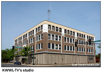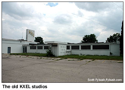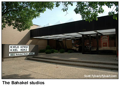 We didn't know much about Waterloo and Cedar Falls, Iowa before this year's trip, and our only contact with the community on our first pass through was a quick stop for gas and food on the way up to Mason City near the start of the journey. This time, we had a little more time to spend, starting with Cedar Falls, the college town on the western edge of the metro area. It's home to the University of Northern Iowa, which produced Doug Vernier, one of the top engineering consultants in the public radio arena. We stopped for a visit to his offices (home to v-soft.com and its excellent tool that provides signal strengths for any given zip code in the country), and to see the AM station just down the road. This two-tower array on 1250 was once KCNZ, but then it spawned an expanded-band outlet on 1650 which took the KCNZ calls and formats (now sports as "the Fan 1650"), leaving 1250 as Spanish-language KDNZ. The studios for 1650 and its sister FM, KCVM (96.1 Hudson), remain in the building, as do studios and transmitter for KDNZ. It's a short drive east along the Cedar River to Waterloo, where we pass the studios of the city's NBC affiliate, KWWL-TV (Channel 7) on the north edge of downtown on our way to Sycamore Street, just a couple of blocks from the river. Here we find the modern studio building that's home to Bahakel Broadcasting's four-station cluster, including the city's big signal, KXEL (1540).