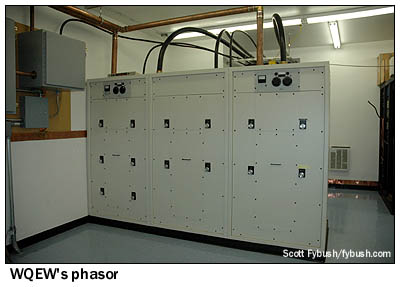 WQXR was shifted to 1560 in the big NARBA upheaval of 1941. Three years later, Sanger sold the station (and its new FM sister, WQXQ) to the New York Times, and on March 19, 1956 it boosted power to 50 kilowatts, adding the current transmitter building and two additional towers. The antenna configuration was tweaked again in 1964, when a fourth tower was added. By day, 1560 uses two towers, switching to a three-tower array at sunset in Bakersfield, California, where it shares 1560 with KNZR (formerly KPMC). While warehouses grew up around this site (today the building and grounds are almost invisible from any of the streets that surround it), the transmitter lineup inside the building kept changing. The initial 50-kilowatt transmitter was a Westinghouse 50HG, filling a big room at the center of the new building. It was supplanted two decades later by a Continental 317-C2 that replaced the old 10-kilowatt unit in the old transmitter building.