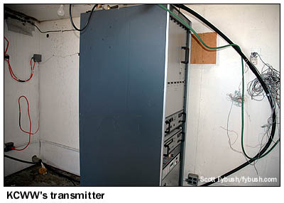 KNYN used to be a 27 kW class C1 facility up here, serving a big swath of southwestern Wyoming and adjacent Utah, but its old tower collapsed in 2005, and since then it's been running under Special Temporary Authority at extremely reduced power, making it not much more than a local Evanston station. See that one-bay vertical antenna on the tower just to the left of the transmitter building? That's KNYN's current antenna, and that CCA transmitter in the shack is long silent, with a 500-watt Nicom transmitter keeping "Magic 99" on the air for now.