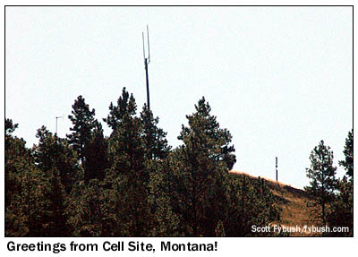 It's getting dark as we finally head north out of Butte, en route to our overnight stop in Helena, but we can't leave out one more curious stop along the route north. Jefferson County, the mostly rural, mountainous county between Butte and Helena, took advantage of the new LPFM rules to assemble one of the most extensive emergency FM networks in the country. Seven LPFM signals line I-15 and I-90, covering the county with emergency messages - and some great old-time country music to fill the time when there are no emergencies. And one of them, on a hill overlooking a rest stop on I-15, didn't have a nearby town to serve as a community of license, so KEAJ-LP (100.3) ended up licensed to "Cell Site, Montana"! That was too good for us to pass up, so we had to stop and shoot some telephoto pictures of the top of the hill. Look very carefully at the left side of the picture, right above the trees, and you can spot the little KEAJ-LP antenna up there. And yes, we were sure to get a "KEAJ Cell Site" legal ID - just part of the fun you'll hear when you join us over on our sister site, Tophour.com on Wednesday! Tower Site Calendar 2008 is almost sold out! Visit the Fybush.com Store now and get your calendar now!