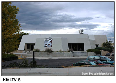 Back out in the suburbs, the Idaho Public TV studios are in an office building alongside I-184 at 1455 N. Orchard Street, just around the corner from the Journal radio stations and KTVB's studios. It's a 20-minute drive west along I-184 and I-84 to Nampa, home of the other two TV signals in the market. Journal's KIVI-TV (Channel 6) is the ABC affiliate in the market; it signed on in 1974, taking the channel that had been briefly occupied two decades earlier by the short-lived KFXD-TV, and a recent infusion of cash by Journal has lifted it into a solid second place in the market behind KTVB. Its partnership with the Journal radio stations doesn't hurt, either; there's frequent on-air cross-promotion of the TV station on all the radio stations. (Which, yes, makes it a little ironic that the radio stations are housed next door to the competition, KTVB!)