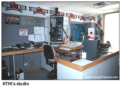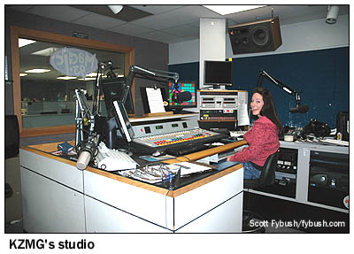 Unlike Peak and Journal, which park their racks behind locked doors, the Citadel "rack room" is really part of a hallway at the back of the studio core. The engineers here - Bill and Randall Rocks, who, in good "small-radio-world" fashion, had recently come to Boise from Yellowstone Public Radio in Montana, where we'd met his successor a week earlier - believe in sharing as much engineering with their airstaff as they can, so there are pictures of the transmitter sites out here, and a neat graphical remote control that tracks the status of all three sites. (We'll see the two AM facilities in next week's installment and the combined FM facility, up at Deer Point, in two weeks.) The only studios outside the central core are at this end of the building - KKGL is next door to engineering, while KTIK is all the way at the back corner of the building, where it has a nice big room to originate its local afternoon sports show.