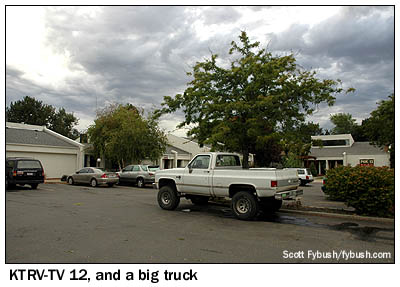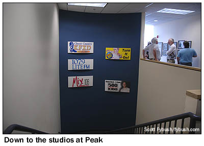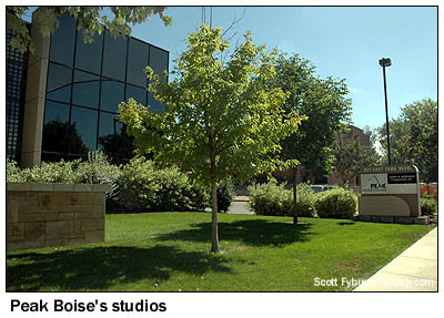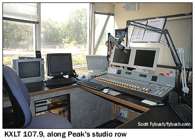 In an office park just south of downtown, not far from the Boise State University campus, we find the newish building that was home, until very recently, to Clear Channel's Boise stations. The stations are still there, but this was one of the markets Clear Channel spun off in 2007, and when we visited, the stations were in the hands of Peak Broadcasting. This cluster also includes four FMs - top 40 "Kiss" KSAS-FM (103.3 Caldwell), country "Wow" KAWO (104.3 Boise), hot AC "Mix" KCIX (105.9 Garden City) and AC "Lite FM" KXLT (107.9 Eagle) - and two AMs, KIDO (580 Nampa) and KFXD (630 Boise).