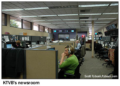 ![]() July 25, 2008 The Big Trip 2007, part XII: The Studios of Boise, IdahoIt's become an annual tradition here at Tower Site of the Week - load up the tape decks and the DVD recorders and the cameras, line up a bunch of station tours, gather a few friends, and hit the road for as much as two weeks of in-depth exploration of the radio and TV environment in some scenic part of this great nation of ours. Then we come home and share it all with you, in pictures here on fybush.com and in audio (of legal IDs) over at our sister site, tophour.com. "Big Trip 2007" covered parts of Utah, Wyoming, Idaho, Montana, Washington and Oregon over two weeks in late August and early September. Days Eight, Nine and Ten - Thursday, August 31 - Sunday, September 2, 2007 While most of our Big Trip took us through smaller markets that could be easily seen in a day or less, there were two stops that required more attention - Salt Lake City, which we've already chronicled in multiple installments, and Boise, Idaho, where we spent the Labor Day weekend with our friends from the National Radio Club and the Worldwide TV-FM DX Association, who were holding their first-ever joint convention. Over the next three installments of Tower Site of the Week, we'll divert from a strict chronological recap of the trip and try to put this very interesting medium market in some kind of logical order. Happily, the first stop on the trip, chronologically, is also a logical place to start our Tower Site visit to Boise: right around the corner from the convention hotel at the studios of KTVB-TV at 5407 W. Fairview, alongside the I-184 freeway on the west side of the city.