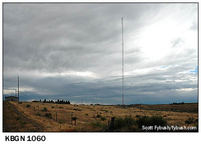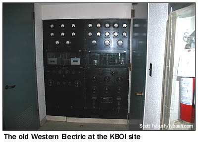 This site was heavily reconstructed in 2000, when Lotus wanted to improve the night signal of another station on 670, KIRN in Simi Valley, California. To allow KIRN to move to a new transmitter site in the high desert northeast of Los Angeles, Lotus paid to redesign the KBOI night array, replacing three of its original four towers with five new towers. Instead of blanketing most of the west at night (your editor fondly remembers listening to KBOI's music shows, in AM stereo no less, from along the California/Nevada border in the late eighties), KBOI now has a null toward California, aiming most of its signal north and west. It's still a booming signal into Oregon and Washington, and by far the best AM signal in the market; it's a tribute to the forethought of KBOI's engineers in the sixties that they sited this facility far enough south that all the population growth has remained north of these towers. (Ironically, KIRN never did get around to building its proposed new array up near Palmdale, California, after going to all that trouble to rebuild KBOI.)