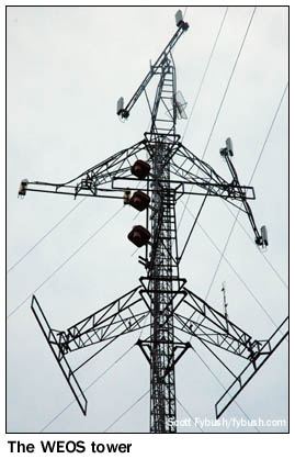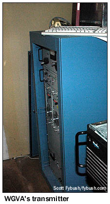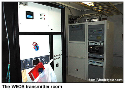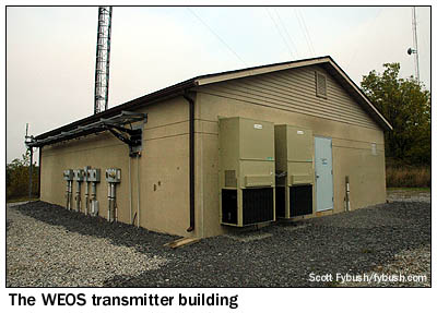 Out back, that WGVA tower has been there since the station signed on in 1947; these days, it has an FM antenna on it, too, carrying Calvary Satellite Network translator W214BR (90.7). We'll come back to Geneva in a future installment to look at its other commercial FM, WFLK (101.7), whose tower is just down the road from WGVA - but we'll close out this installment with a visit to the city's noncommercial station. WEOS (89.7) is the radio voice of Hobart and William Smith Colleges, and it's grown considerably from its 1971 debut as a 10-watt class D signal broadcasting from the roof of a dorm building on campus. Today, it's a directional 4 kW signal from a tower in Stanley, N.Y., west of Geneva, and it holds a CP for a move to 89.5 and another power increase.