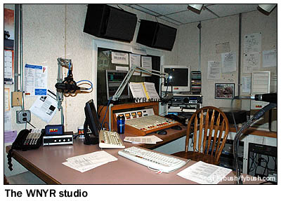 We still remember the WGVA building on Lenox Road as it appeared in the eighties, when it was home to just WGVA itself, with a big old-fashioned studio on the right side of the building. Today, that side of the building houses a hallway lined by studios - a little production room in the back for WSFW(AM), a larger studio next to it for the News Network, a newsroom next to that, and the WNYR studio at the end. Across the hall, a transmitter room houses WGVA's Energy-Onix transmitter and automation and STL gear for all the stations (they're using FMeXtra on the WNYR signal to feed several of the outlying AM stations from Geneva), and there's a studio for WLLW next to that.