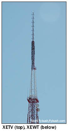 ![]() February 13, 2009 XETV, Tijuana/San Diego So here we are at a most exciting moment in broadcast history, mere days away from the end of full-power analog TV...wait, what's that again? Oh, right...here we are at a most exciting moment in broadcast history, just a few months away from the official end of full-power analog TV broadcasting in the US, even, apparently, in markets where all the local stations were ready to pull the plug on analog service. No matter: we'll just dip into the pile of "sites we still need to feature" to pull out one of the most unusual signals to be flipping on February 17...) One of the truly fun parts of doing "Tower Site of the Week" is the unusual invitations it brings our way. Our April 2008 pre-NAB swing through southern California was particularly remarkable in that respect - as you'll see in future "Site of the Week" installments, it brought us everywhere from the World's Shortest Blaw-Knox Diamond Tower to the last remaining rooftop "hammock" AM antenna to the unique operation we're showing you this week: the cross-border TV legend that is XETV, channel 6, licensed to Tijuana, Baja California, Mexico and serving all of sunny San Diego. ![]() Why feature XETV on this particular week, when the attention of the television world is focused on the U.S., where February 17, 2009 was supposed to be the end of full-power analog TV? After all, as a Mexican-licensed station, XETV was never subject to that deadline, and its analog operation is expected to continue for several years to come. Here's why: It turns out that while most U.S.-based analog signals will be continuing for several months after all, there will be big changes coming to XETV that day, as a signal that's broadcast in English for more than 55 years begins speaking Spanish for the first time in its history.