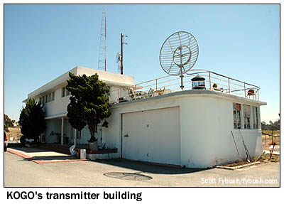 And our final stop on this leg of the trip finds us just a mile or so away from the KGB site, at the transmitter facility known as "Emerald Hills," home to KOGO (600), KLNV (106.5) and KSON-FM (97.3). This facility takes its name from a country club that used to occupy this hilltop overlooking Highway 94 east of downtown San Diego. The site was purchased in 1939 for what was then KFSD on 600, but it took nearly another decade for the station to make the move from the U.S. Grant Hotel downtown out here.
