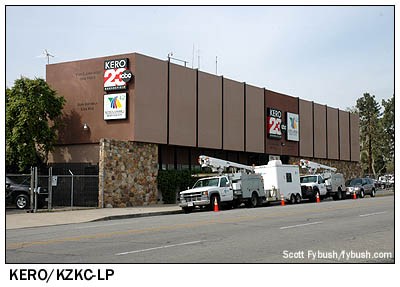 From east to west, we start at 321 21st Street, home to McGraw-Hill's KERO-TV, the oldest TV station in the market. KERO started out on channel 10, but the FCC's controversial "deintermixture" policy forced it to move to channel 23 in 1963, turning Bakersfield into an all-UHF market. (Ironically, KERO-DT operates on...channel 10!) After spending time with NBC and then CBS, KERO flipped to ABC in 1996. McGraw-Hill added an Azteca America LPTV, KZKC-LP 42, a few years back. There are LPTV subchannels at the other TV stations here, too: at 2120 L Street, in the heart of downtown, NBC affiliate KGET (Channel 17) also operates Telemundo outlet KKEY-LP (Channel 11) and a CW subchannel on 17.2. (There's even Spanish-language local evening news on KKEY, though we didn't get to town in time to see it.) On the west end of downtown, in an office park adjacent to Highway 99, Fisher-owned ABC affiliate KBAK-TV (Channel 29) occupies a low-slung building shared with Fox affiliate KBFX-CA (Channel 58). We didn't get to the TV transmitter sites, located up in the Sierra foothills northeast of Bakersfield, but we did get to plenty of AM sites - and we'll show those to you in next week's installment. (In the meantime, visit our sister site TopHour.com next Wednesday to hear the first of two installments of Bakersfield legal IDs...)