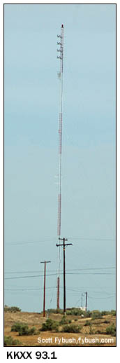 For a tower-hunter based in upstate New York, the Golden State has always held a special appeal, especially during those long, gray winter months (and even on this rather gray, damp first day of May.) Over the course of a couple of decades, we've taken the opportunity to visit stations all over California, including pretty much everything up and down the coast from Sonoma to San Diego. But even with all those trips (and a year of living near the Nevada border in rural Inyo County), our survey of California's tower sites was still missing some big swaths of the state. In addition to northern California - and, yes, Chico, Redding and Eureka, we still intend to get up your way someday - we found ourselves missing most of the Central Valley, the broad, flat expanse of farmland that stretches south from Sacramento through Stockton and Modesto and Merced and Fresno and Visalia to Bakersfield. That's a lot of territory to cover all at once, but our trip out to the 2008 NAB Show in Las Vegas gave us a chance to chip away at a significant piece of it by heading south and west from Vegas on I-15 and California 58 and spending a day in the Bakersfield market. Bakersfield stretches out along two transportation corridors: California 99 is the "Main Street" of the Central Valley, going north to Tulare and Fresno and south toward Los Angeles, two hours away. California 58 goes east as a freeway toward Tehachapi and Barstow (connecting with I-15 to Vegas) and west as a twisty mountain road over the coastal hills toward San Luis Obispo. Downtown Bakersfield sits just northeast of the junction of those two major highways, and most of the city's AM stations come from sites lined up just south of 58. We, however, started at the northeastern corner of the market, up where downtown gives way to rolling hills dotted by oil wells, one of the region's big industries. Indeed, the first two sites we feature this week are surrounded by oil fields, in the appropriately-named suburb of Oildale. KKXX (93.1 Shafter), a class A adult-hits station ("Pirate Radio") stands by itself on Granite Road, about half a mile north of another tower shared by three Buckley Broadcasting FMs: B1s KLLY (95.3 Oildale, hot AC "Kelly 95") and KKBB (99.3 Bakersfield, rhythmic oldies "Groove 99.3") and class A KSMJ (97.7 Shafter, AC "97.7 the Breeze.") ![]() About three miles to the east, the China Grade Loop road that passes through Oildale's oil fields turns north and approaches a big cluster of AM towers. The three on the left were here first, carrying the AM 970 facility that came on in the early sixties as KBIS. In 1977, country giant KUZZ moved from its original daytime home on 800 up to 970 - and in 1984, KUZZ owner Buck Owens upgraded facilities once again, swapping 970 for the much bigger 550 signal that had been home to legendary top-40 station KAFY. But the KAFY calls didn't find as much success up the dial at 970, and the 970 signal (an unusual one with more power at night - 5 kW - than by day, when it runs just 1000 watts) went through a succession of calls and formats. When we visited in 2008, it was Clear Channel-owned KHTY, running the "W Radio" service from Mexico; since then, it's flipped again to Fox Sports Radio. The KAFY calls, meanwhile, came back to this site: they're on a Spanish religious signal at 1100 that signed on from here in 1999 as a diplex. And not long before our 2008 visit, KGDP (660) had migrated inland from its original home in Orcutt (near Santa Maria on the coast) to Oildale, building a four-tower array next to the 970/1100 site to run 8 kW by day, 6 kW by night. The station was testing when we stopped by, and hasn't been on the air much -if at all - since then.