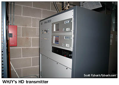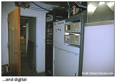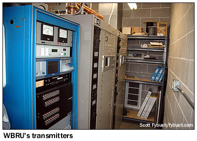 And we finish our Clear Channel Providence site tour just up Pine Street at the transmitter (and former studio building) of WNAC (Channel 64), where WWBB (101.5 Providence) occupies a ground-floor room next to what used to be the Fox 64 sales office. This one's another all-BE room - a main and aux analog transmitter and another FMi 703 for HD. There's an interesting history here: while 101.5 has been at this site since 1984, it began at the other end of Rhode Island, at Jerimoth Hill near the Connecticut state line. That's the state's highest point (such as it is), and it's where T. Mitchell Hastings, founder of Boston's WBCN, put WTMH-FM on the air in the fifties. WTMH became WXCN, part of the "Concert Network" that also included WHCN in Hartford and WNCN in New York, and eventually shifted to beautiful music as WLKW-FM, sister station to WLKW (990 Providence). It became WWBB in 1989, and has been doing some flavor of oldies or classic hits every since. Studios? We didn't get to Clear Channel's Oxford Street studio this time - but we did see Citadel's studios, and that's where we'll go in next week's Site of the Week.