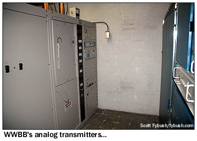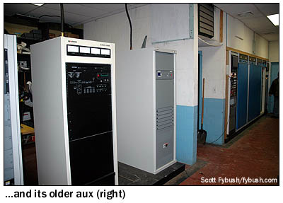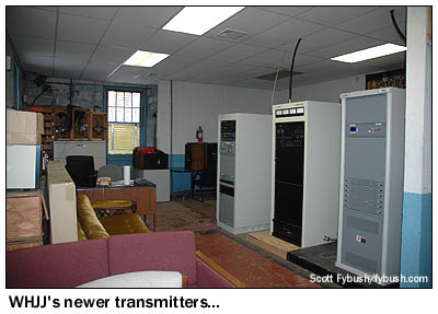 In this case, though, we were racing against time: with the Providence TV market sticking to the original February 17, 2009 deadline to shut down their analog signals, we wanted to capture as much as we could of the market's TV infrastructure while the analog stations were still there. You saw those photos here on Site of the Week a few months ago - but they were just part of a busy, slushy, frigid day for us in Providence that also included plenty of the city's radio sites. In particular, we finally got the chance to do something that had eluded us on previous visits to Rhode Island: we got together with the chief engineers of the two big radio clusters in town, Clear Channel and Citadel, to get inside their transmitter sites for visits and pictures. Right up at the top of the list was a site we'd featured from the outside back in the earliest days of Site of the Week, WHJJ (920). It was so gray and foggy when we got there that I have no photos this time of the two massive square cross-section Blaw-Knox towers that rise 407' each from the swamps off Wampanoag Trail in East Providence. (You can see some over at NECRAT, at its new www.NECRAT.us address, though.)