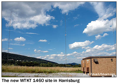 This is Clear Channel's WTKT (1460), the descendant of the old WCMB that gave up its 960 frequency to WHYL in the early fifties. I remember seeing the Harrisburg 1460 array in the early nineties, when it was in its final years at the old site on Poplar Church Road in Camp Hill, across the river from downtown Harrisburg. That site was in use by WCMB back in its 960 days as well, and remained in use by WCMB when it shifted to 1460. WHP, meanwhile, was on 1460 from a site east of Harrisburg on the Harrisburg-Hershey highway; it moved to 580 from a six-tower site in Enola, just west of the site where WTKT now sits. There's a Site of the Week series on Harrisburg coming up in a few months, and I'll dig out those vintage pictures of the Poplar Church Road site and post them when we get to that series. In any event, 1460 lost the Poplar Church Road site when the land was sold in 1997, and the station spent a decade at low power diplexed on the WKBO (1230) tower across the river before building this new site off A Street in Summerdale. From here, WTKT runs 5000 watts by day and 4200 watts by night, a slight reduction from its old 5000-watt fulltime service from Poplar Church Road. This series of Site of the Week installments is once again accompanied by weekly ID updates over at our sister site, TopHour.com. Stop by on Wednesday, Feb. 24 for the next big batch of IDs...and in the meantime, don't miss your chance to grab one of the dwindling remaining stash of the all-new Tower Site Calendar 2010, just in time to fill that space on the wall where your 2009 edition once hung.