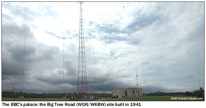 WGR's pioneering role in Buffalo radio is unchallenged. While it wasn't the first station in town (that was the very short-lived WWT, which came and went in 1922), WGR's debut on May 22, 1922 makes it the oldest surviving station in Buffalo. It came on the air from the Federal Telephone & Telegraph Co. building on Elmwood Avenue (the building still stands, home to the FWS furniture store), and soon settled in on 990 kilocycles. WKBW was founded in 1926 by the Rev. Clinton Churchill, transmitting on 1380 kilocycles from his Churchill Tabernacle at 1420 Main Street in Buffalo at first, and soon moving to a site on what's now Sweet Home Road in Amherst, near where present-day I-990 cuts across en route to the SUNY Buffalo north campus. WMAK's early history has already been noted; it operated on 550 kilocycles from Lockport, and remained on that frequency for its first year at Shawnee Road. WKEN is perhaps the most mysterious of the four stations. It was on the air at 1470 kilocycles by 1927, and perhaps somewhat earlier, broadcasting initially from Kenmore, just north of Buffalo (hence the callsign), then from nearby Grand Island at a location I've yet to unearth. The "General Order 40" realignment of the broadcast spectrum, which took effect November 11, 1928, initially proposed to keep WKEN on 1470, imposing a share-time arrangement with WKBW on the same channel. WKEN proposed an alternate arrangement, becoming one of the first daytime-only stations on a different channel, 1040, and leaving 1470 for WKBW's full-time use. (General Order 40 also moved WGR to WMAK's former 550 kilocycle frequency, shifting WMAK to 900 kilocycles.) By early 1929, some of these stations were already cooperating; WGR and WKBW were apparently sharing the Sweet Home Road transmitter site, for instance. On February 6, the newspapers carried word of a big development: the formation of a "$1,000,000 broadcasting corporation, created in the interest of better radio service in Buffalo." This was the BBC, with furniture magnate Irvine Kittinger as president and a leadership group that included WMAK's Lounsberry, WKBW's Churchill and Marine Bank's George Rand, who provided studio space for all four stations in the new Rand Building on Lafayette Square, then Buffalo's tallest structure. Even under the relatively lax regulations of 1929, four stations under common management raised eyebrows, and the news stories announcing the formation of the BBC made it clear that "the movement is not in any sense a merger." Within a few months, the News was preparing to launch its own radio station, and by January 1930 it had been granted a license for WRAS, operating from Orchard Park, south of Buffalo, on 900 kilocycles. Here we enter a gray area in my research thus far: 900 kilocycles was the frequency WMAK was already using up in Wheatfield, and it's not immediately clear whether the Federal Radio Commission intended for WMAK and WRAS to share time, or whether the News intended to bump WMAK off the air entirely. This much I do know: by late June of 1930, WMAK was gone from 900 and from the Shawnee Road site in Wheatfield. The frequency became home to the News station, under new calls WBEN. But WMAK didn't go away at that point. Instead, the BBC moved the WMAK call letters up the dial to that daytimer on 1040 broadcasting from Grand Island, the former WKEN - and that, the continued existence of a BBC station called "WMAK," now clearly explains why WBEN never acknowledged the earlier history of its frequency or its first transmitter site. The second incarnation of WMAK didn't last long, and there lies another mystery: by 1932, the 1040 frequency was silent in Buffalo and the WMAK calls were gone for good. (They'd later have another run at fame down in Nashville, but that's a different story!) Down to a mere two stations, the BBC was far from out: WGR and WKBW (which shifted again to 1480 kc at some point in the thirties) remained powerful players in Buffalo, competing intensely with WBEN, which itself added a second signal in 1936 with the purchase of another pioneering station, WEBR (then operating at 1310 kc, and later to 1340 after NARBA). ![]() In 1940, WKBW received FCC approval for a power increase to 50,000 watts, and the BBC began building a new joint transmitter site for WKBW and WGR to the south of Buffalo, on Big Tree Road in Hamburg. (We profiled that site in August 2007.) That facility opened for business Oct. 10, 1941, just a few months after the NARBA realignment moved WKBW to 1520, and just a month after WBEN (itself shifted to 930 on the dial by NARBA) opened its own new transmitter site on Grand Island, which we also profiled in August 2007.