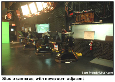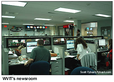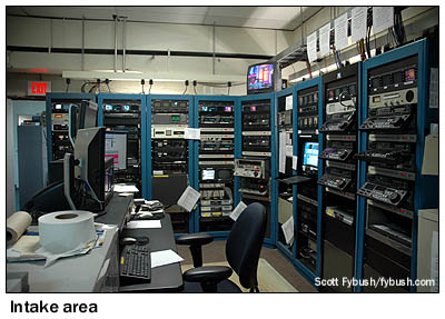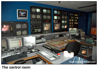 There was a smaller room adjacent to the newsroom for news meetings and an adjoining space for news ingest - and from here, the hallway led us right back past the mail room to the front door and out into the rain. One of these days (maybe even as soon as this summer), we'll get back to Hartford to see the completed new building, which wasn't quite ready for tours when we visited - and to see the WVIT transmitter site, not to mention some of the other new studio facilities that have been built in the market over the last few years. In the meantime, at least we have these pictures to show you what once was in New Britain... This is another one of those multimedia experiences, with lots of Hartford IDs appearing Wednesday, April 7 over at TopHour.com - and in the meantime, we urge you not to miss your chance to grab one of the dwindling remaining stash of the all-new Tower Site Calendar 2010, just in time to fill that space on the wall where your 2009 edition once hung.