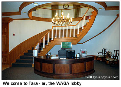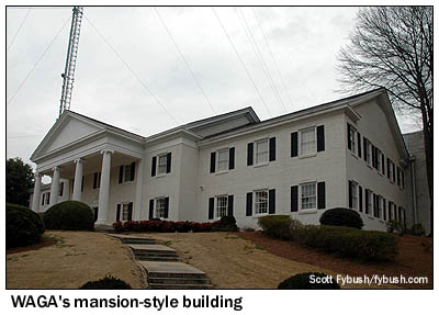 ![]() Even on a tightly-packed two-day tour like this one, there's always room for one more tour if a good opportunity presents itself, and so it did near the end of our second day, when a last-minute phone call yielded a late-afternoon impromptu tour of one of Atlanta's biggest and oldest TV stations. WAGA-TV (Channel 5) wasn't the first station in town - that honor belonged to WSB-TV (then on channel 8), which signed on in September of 1948 - but it wasn't far behind, debuting on March 8, 1949 from a studio and transmitter site (complete with a 499-foot self-supporting tower) at 1018 West Peachtree Street, just north of downtown Atlanta. Storer Broadcasting already owned radio stations in Atlanta: WAGA (590) and WAGA-FM (103.3) were the city's CBS radio affiliates, so it was inevitable that WAGA-TV would follow suit, becoming the CBS-TV affiliate, with secondary connections to ABC and DuMont, at least for its first few years. The city's growth in the 1950s made a bigger signal a necessity, and in 1955 Storer bought land northeast of downtown, in the Druid Hills neighborhood near the WAGA(AM) tower site, building an 1100-foot tower to dramatically boost channel 5's reach. A decade later, the studios followed the transmitter out to Druid Hills, where Storer built what can only be described as a classic Storer studio building. Wherever Storer built studios, whether it was WHN in Manhattan or WSPD in Toledo or WJBK in Detroit or WSBK in Boston, the style was always the same: Southern antebellum mansion. And if the style didn't quite fit alongside the Massachusetts Turnpike or Ten Mile Road in Southfield, it fit perfectly at 1551 Briarcliff Road NE.