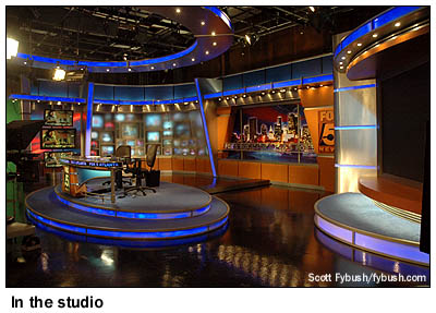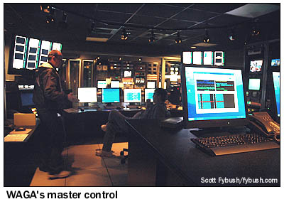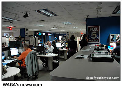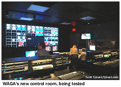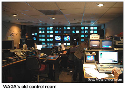 Our 2009 visit found WAGA at a moment of big transition in its news production: the old SD control room around the corner from the news studio was in its final days, with rehearsals already underway in the new HD control room that had been carved out of channel 5's other, smaller, studio space.