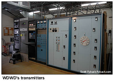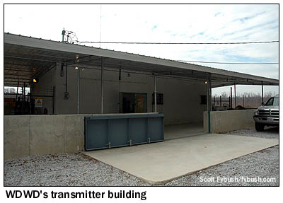 In 1997, 590 flipped again, trading the WKHX(AM) calls for WDWD. That's "WD" for "Walt Disney," parent company of then-owner ABC Radio - and of course namesake of Radio Disney, which has been heard on 590 ever since. When we paid a call on the Powder Springs site in 2009, WDWD was just in the final stages of a daytime power increase to 12 kW, which meant a new Nautel XR12 transmitter to replace the AMPFET that had been out here since the site was new. Notice that the Nautel was up on a platform - and then notice the floodwall around the building and the sliding gate that could seal it off if the waters of nearby Noses Creek started to rise. Alas, all that emergency preparedness was no match for the deluge that hit the Atlanta area in the fall of 2009. The waters rose above the floodwall and right into - and then right over - the building. At the height of the flooding, only the peak of the transmitter-building roof poked up above the muddy water. WDWD was off the air for a week, but much of the equipment was saved, and it was soon dried out and back on the air after some very impressive hard work by contract engineer Russell Smith and his crew. This Tower Site of the Week installment comes with audio over at TopHour.com, where you can hear a whole bunch of 2009 IDs from Atlanta - and in the meantime, we urge you not to miss your chance to grab one of the dwindling remaining stash of the all-new Tower Site Calendar 2010, just in time to fill that space on the wall where your 2009 edition once hung.