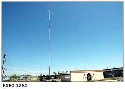 Another site northwest of downtown is the ex-daytimer on 1280 located on West 38th Avenue. It's now KXEG, but the callsign on the roof of the old transmitter building still says KHEP, the identity the religious station used for most of its life beginning in 1956.