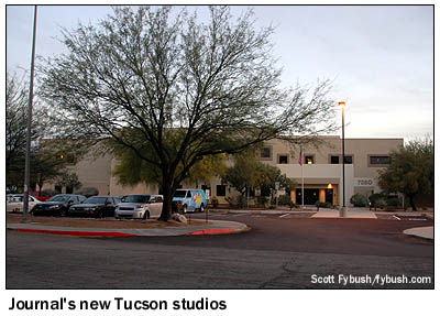There's one more Tucson site on our agenda before the sun goes down this April evening: Journal Broadcast Group had recently consolidated its studios way out on the east side of town, and that building at 7280 Rosewood is our last stop as the sun begins to set. It's home to ABC affiliate KGUN (Channel 9) and three radio stations: sports KFFN (1490, the original KTKT frequency), KMXZ (94.9), KGMG (106.3) and KQTH (104.1). We'll see some of their transmitter sites, a few more studios, and most of the rest of Tucson in our next installment on September 3 - but in the meantime, feed your thirst for more Tucson broadcast history not only at Barry's sites above, but at some nifty tribute sites for KTKT and KWFM, too. (And we'll have lots of Tucson IDs over at TopHour.com after Labor Day, too...) - Find out when the new Tower Site is posted,