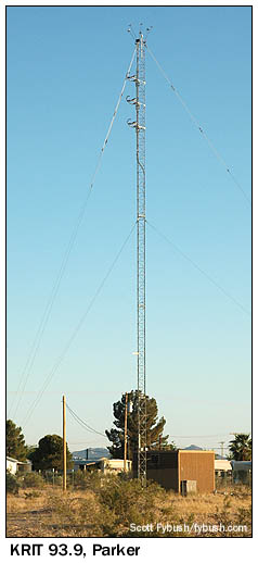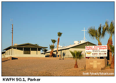 Parker, some 35 miles north of Quartzsite, sits right on the Colorado River, and boasts a surprisingly large complement of radio stations despite its even more remote location (no major east-west highways cross the river between I-10 at Blythe to the south and I-40 at Topock to the north, some 50 miles by road from here.)