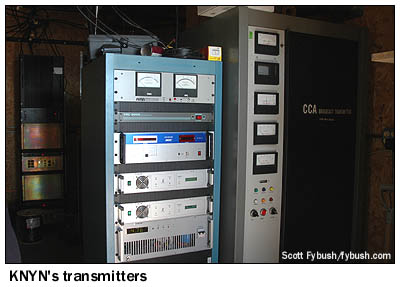 KNYN used to be a 27 kW class C1 facility up here, serving a big swath of southwestern Wyoming and adjacent Utah, but its old tower collapsed in 2005, and since then it's been running under Special Temporary Authority at extremely reduced power, making it not much more than a local Evanston station. See that one-bay vertical antenna on the tower just to the left of the transmitter building? That's KNYN's current antenna, and that CCA transmitter in the shack is long silent, with a 500-watt Nicom transmitter keeping "Magic 99" on the air for now.