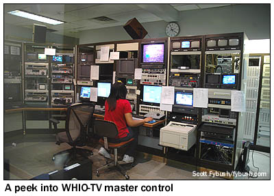 From what we saw of WHIO-TV's operations, it was quite cramped in its last years at Wilmington Avenue. Even though the TV transmitter had long since moved away to the new tower farm west of Dayton, other functions had long since grown to fill the space. WHIO-TV's master control was upstairs, in at least some of the space that had been used by the original TV control room; the newsroom was downstairs, in what looked to be rather less space than was needed for the market's top-rated news operation. That's not a problem in the new WHIO digs; Jason says the new combined radio/TV/newspaper newsroom is huge, and he reports that the staff is settling in quite happily there. We'll get back to Dayton sometime in 2011 to see the new facility - and by then, we'll have caught up with some of our backlog on Tower Site of the Week, so stay tuned in the new year for more of our Dayton visit, including a look at the WHIO 1290 transmitter site, and much more... - Find out when the new Tower Site is posted,
