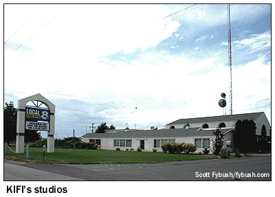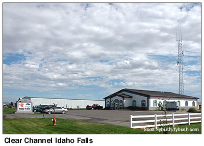 Our tour of Idaho Falls itself begins on the west side of town, just a couple of blocks from the interchange where US 20 (bound for West Yellowstone) and I-15 north (heading up to Butte, Montana) split off. Next to a hotel on Lindsay Boulevard, we find the studios of country giant KUPI (99.1) and its sister stations, classic hits "Arrow" KQEO (107.1) and soft AC "Sunny" KSNA (94.3 Rexburg), owned by Sand Hill Media. That's one of four commercial clusters in the market - the others are Pacific Empire Communications' oldies KGTM (98.1 Rexburg) and hot AC "Hot 106" KBJX (106.3 Shelley), with studios downtown that we missed; Clear Channel's news-talk KID (590) and country "Bull" KID-FM (96.1), later sold to Gap Broadcasting; and Riverbend Communications, which we'll see in a moment. ![]() ![]() The Clear Channel studios are in an industrial park in a rural area north of Idaho Falls off US 20, about three miles southwest of the KID(AM) transmitter, which is off the side of US 26 not far from the point where that road turns east and begins twisting and turning up into the hills en route to Jackson, Wyoming, the ski town an hour or so away. KID's three towers are arranged in a triangle, running 5 kW non-directional by day and 1 kW from all three towers at night. From KID, we can look to the east and see the Iona Butte FM site off in the distance, home to KGTM 98.1, KUPI 99.1, KBJX 106.3, KQEO 107.1 and a couple of noncomms - "Air 1" outlet KAIO (90.5) and SOS Radio religious station KSQS (91.7 Ririe). Two more AMs are up here on the north side of town, closer to downtown in the area where US 20 and 26 converge. KSPZ (980 Ammon) is another Spanish-language signal, while KBLY (1260) is one of the Riverbend stations, simulcasting the news-talk lineup of KBLI (690 Blackfoot), which we'll see in a bit.