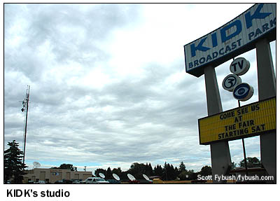 As US 26 (N. Yellowstone Highway) turns toward downtown Idaho Falls, we pass the studios of KIFI-TV (Channel 8), at 1915 N. Yellowstone. The other Idaho Falls TV station, KIDK (Channel 3), is on the southeast side of town, with its blocky "Broadcast Park" studio tucked behind a commercial strip on E. 17th Street, announcing its presence with a big roadside sign that I think once said "KID Radio-TV."