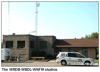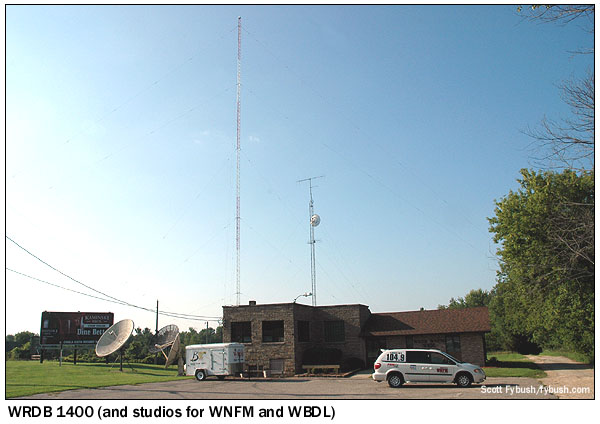 From Spring Green, the route up to the Twin Cities follows state highways north to get to the interstate, and before we get there we pass through the town of Reedsburg, which is home to one AM station, WRDB on 1400, and two FMs, WBDL 102.9 and WNFM 104.9. The three stations are all owned by Magnum Communications, a small group that also owns stations in Tomah, Waunakee, Wisconsin Dells and Portage, and they share the studio building at the WRDB transmitter site just west of downtown Reedsburg on Wisconsin 33. WRDB (which does standards) dates back to 1953, country WNFM started out as WRDB-FM in 1967, and AC WBDL ("B102.9") was dropped in much later, signing on in 1997. The FMs share a tower a couple of miles north of town, but our route keeps going west on 33, then north on Wisconsin 58, which meets I-94 in another small town, Mauston, about 15 miles north of Reedsburg.