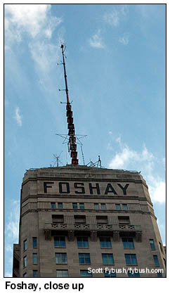 But amidst the non-radio tourism, there was plenty to see on the broadcast front, too: A swing through downtown Minneapolis (to see the Mary Tyler Moore statue featured on this week's front page, of course!) brought us within a couple of blocks of the historic Foshay Tower, which was the tallest building in town in the days when television was just getting started - and which thus ended up being the transmitter site of choice for three of the city's earliest TV stations: WTCN-TV (Channel 4, later WCCO-TV), KMSP-TV (Channel 9) and the second incarnation of WTCN-TV, sharing channel 11 with WMIN-TV.