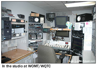 WOMT is a very, very old station: it dates to 1926, when it signed on from the Mikadow Theater (owned by one Francis Kadow), with calls standing for "World's Only Mikadow Theater," which it surely was. It's had only three studio locations in all those years: the theater until 1967, the Wisconsin Fuel & Light Co. building until 1980, and the present facility on Mangin Street, on the city's west side, ever since.