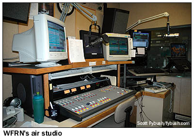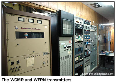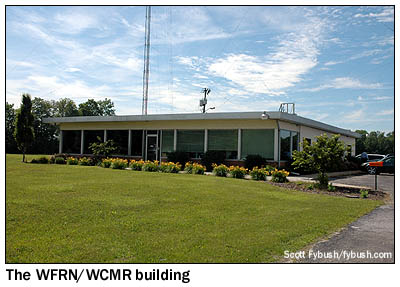 Elkhart, Indiana, 2008It's only about two hours from our "alternate home base" of Fort Wayne, Indiana to another one of the Hoosier State's largest media markets, the twin cities of South Bend and Elkhart. And as we've been going through our photo archives to bring you the before-and-after shots of South Bend's WSBT radio/TV (seen here and here), we realized that over the last few years, we've visited most of the other broadcast facilities in town, too...yet we've never presented them here on Site of the Week. So this week and next, we'll rectify that omission, starting at the Elkhart end of the market, 20 miles or so east of South Bend. Elkhart's been in the news in recent years mainly for its economy, which is terrible even by northern Indiana standards: suffice it to say that the early 21st century has not been kind to a community whose economic engine was the production of mammoth, diesel-guzzling recreational vehicles. But despite Elkhart's struggles, the city still boasts a fairly robust radio and TV scene, and we took in most of it one fine morning in June 2008. We started out at Elkhart's religious stations, WFRN (104.7) and WCMR (1270), located in a rural area a few miles south of downtown Elkhart on County Road 26. As religious stations go, this one's an old-timer: the AM side dates back to 1956, with founder Clarence Moore's initials immortalized in its callsign. "Your Friend, WFRN" came to the FM dial in 1979, at a time when (amazingly) it was still possible for a new 50,000-watt FM station to find a home on the dial in a fairly large market. In the years since, WFRN has become a contemporary Christian powerhouse, expanding its reach with two more full-power relays to the south and a slew of translators extending its coverage all over northern Indiana and into southern Michigan. The AM, meanwhile, ended up as a southern gospel/talk hybrid sharing the WFRN calls - at least until just a few days before our June 2008 visit, when it changed calls back to its original WCMR. (We found out about the call change when we saw the new calls displayed on the transmitters that morning!)