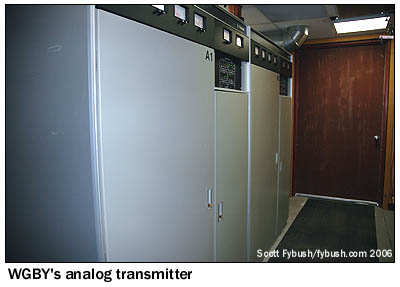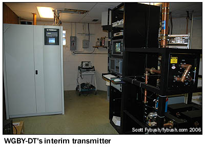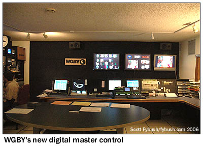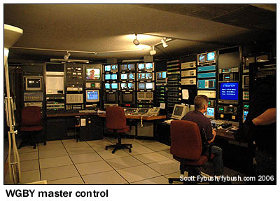 WGBY is owned by Boston's WGBH Educational Foundation, but it maintains its own programming and operates its own master control. That facility, in the basement, was in the process of being upgraded to digital when we visited, and we caught some of the last shots of the old analog master control (above left) and the soon-to-be-inaugurated digital MCR across the room (above right).